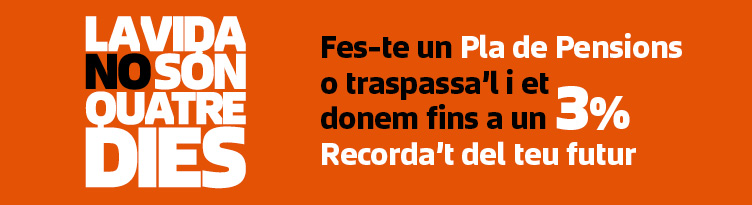 A CatalunyaCaixa sabem que el present és molt important per garantir-te una bona qualitat de vida en el futur. Per això t'oferim assessorament i recursos per poder planificar un estalvi actual que complementi la teva futura pensió de jubilació. Els plans de pensions són l'instrument financer adequat per constituir aquest estalvi, gaudint del millor tractament fiscal.